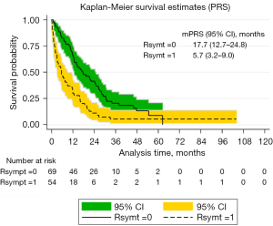 One possible explanation for the long survival time is that a minor subset of patients (n=16; 8%) in our cohort received immunotherapy at some point with a measurable survival benefit. The clinical outcomes could also be affected by the advancements in radiotherapy with improved dose planning and the introduction of intensity-modulated radiation therapy/volumetric modulated arc therapy (IMRT/VMAT) technology. Additionally, the use of fluorodeoxyglucose positron emission tomography (PET) likely impacts outcomes by enhancing lymph node staging and enabling more precise targeting (28,29). Furthermore, staging methods, patient selection, and local policies for operability could influence the results. Interestingly, although median survival was longer, the proportion of patients with progression was similar to a previous report by Grass et al. (30). Keeping in mind that inoperable patients have an inferior prognosis in the first place and considering the survival rates for stage III patients after surgery (31), the CRT option should at least be regarded as a noninferior option for stage III patients in the real-world setting.