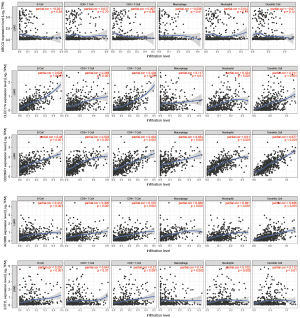 The correlation between the ITME genes and the infiltration levels of immune cells