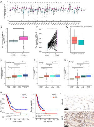 In addition, we conducted a multivariable Cox regression analysis on the overall risk of death in TCGA-LUAD (Figure S1B). The Cox proportional hazards regression analysis revealed that low expression of PPM1G [hazard ratio (HR) =0.67, 95% confidence interval (CI): 0.49–0.91; P=0.01], stage III–IV (HR =2.03, 95% CI: 1.01–4.09; P=0.047), and T3–T4 (HR =1.76, 95% CI: 1.03–3.02; P=0.04) were associated with overall survival. These findings suggest that PPM1G expression and tumor stage may serve as useful prognostic indicators for patients with LUAD.