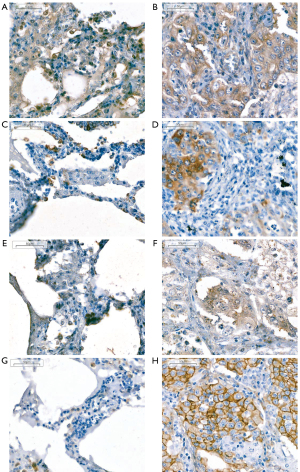 - Smits AJ, Vink A, Tolenaars G, et al. Different cutoff values for thyroid transcription factor-1 antibodies in the diagnosis of lung adenocarcinoma. Appl Immunohistochem Mol Morphol 2015;23:416-21. [Crossref] [PubMed]