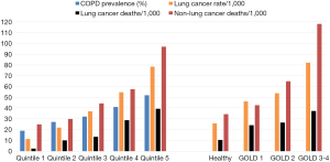 - Young RP, Hopkins RJ, Christmas T, et al. COPD prevalence is increased in lung cancer independence of age, gender and smoking history. Eur Respir J 2009;34:380-6. [Crossref] [PubMed]