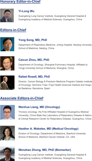 What’s more, TLCR is the first international journal devoted to closing the gap between “Bench and Bedside” in lung cancer and related thoracic diseases with Prof. Yilong Wu as the Honorary Editor-in-Chief, Prof. Yong Song, Prof. Caicun Zhou and Prof. Rafeal Rosell as the Editors-in-Chief, as well as the vigorous backup of a strong editorial board (Figure 2).