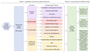 Participants for this study were recruited from the University of Rochester Wilmot Cancer Institute (for phase 1 qualitative interviews) and the GO2 Foundation for Lung Cancer, Lung Cancer Registry (www.lungcancerregistry.org; for phase 2 cross-sectional study). All participants were (I) 18 years old or older, (II) had LC, (III) were able to speak, read, and understand English, and (IV) were able to provide informed consent.