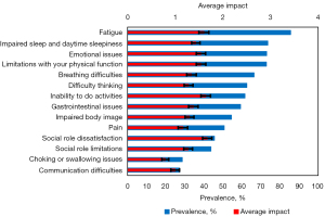 • Social dissatisfaction, activity limitations, & fatigue were highly impactful.